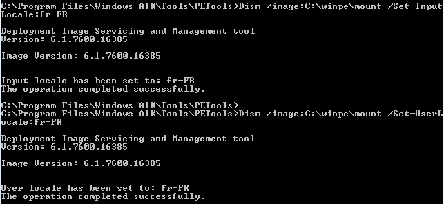 Dism /image:C:\winpe\mount /Set-UserLocale:fr-FR